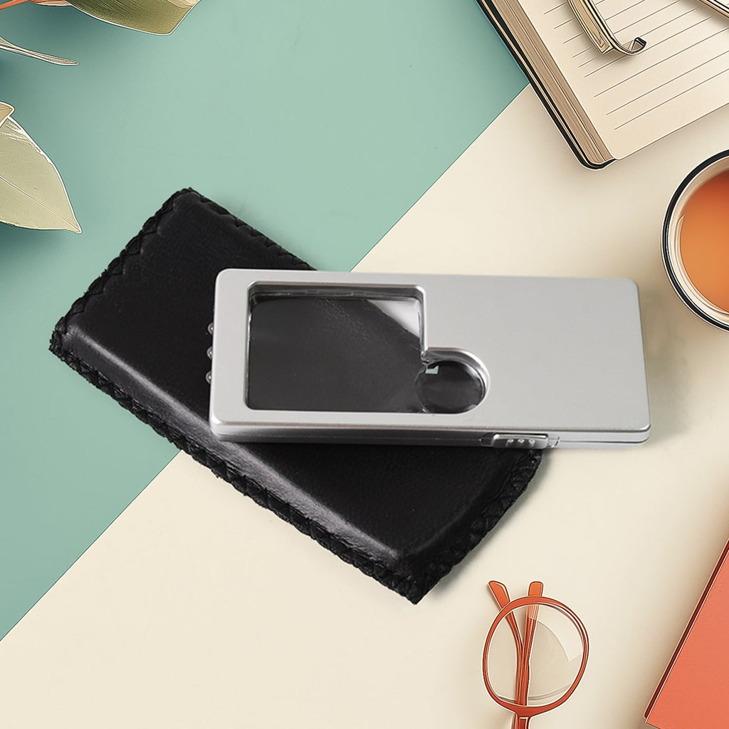 Magnifying Glass with Light, 3X 10X Pocket Magnifier, Card Type Magnifying Portable Glasses with PU Leather Holder case, Good Gift for Reading, Inspection, Coins, Jewelry, Menu Travel (1 Pc)