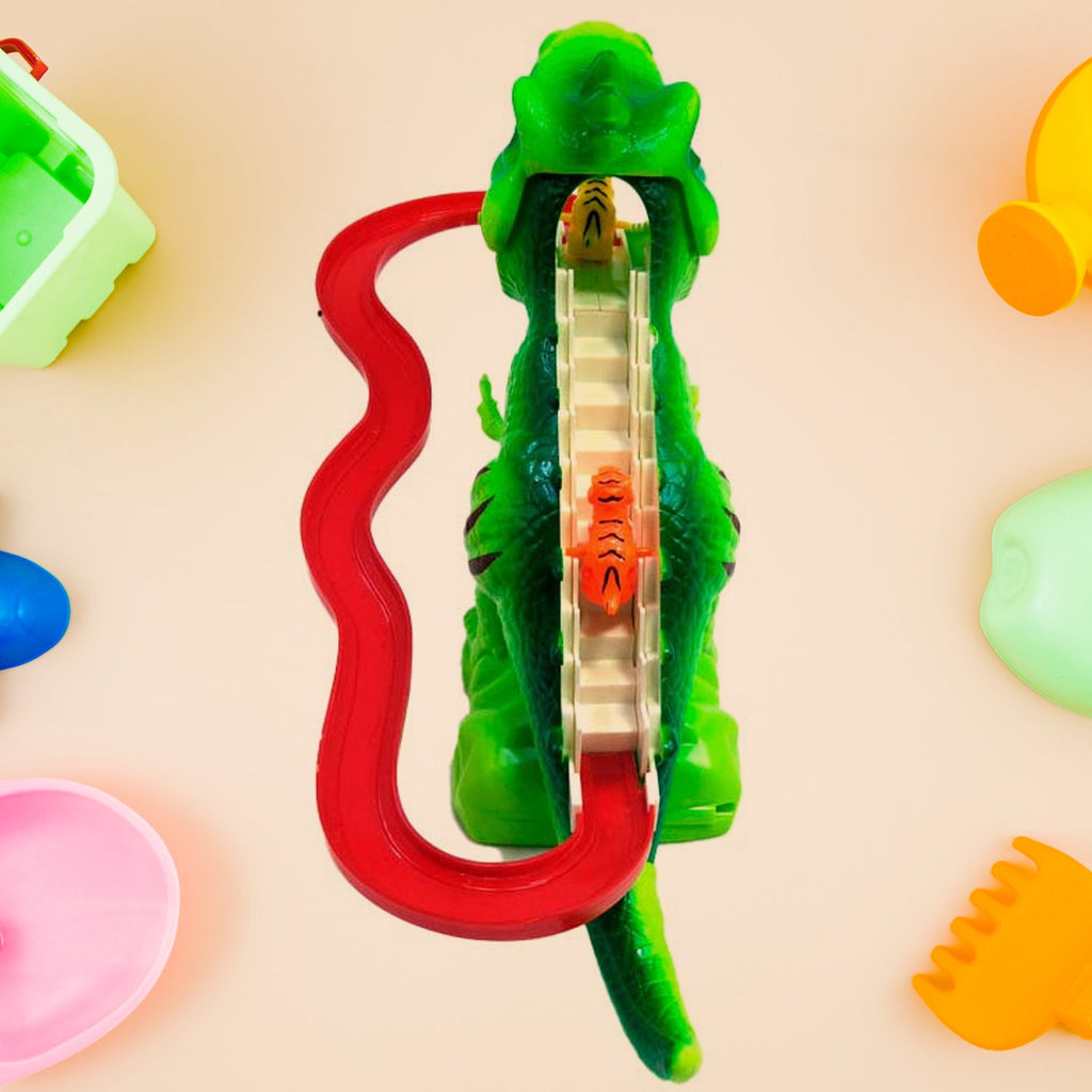 • This fun stair climbing toy set features blinking LED lights and upbeat music (with an on/off button) that your child will love. After turning on the switch, the dinosaur will climb the stairs with the music, and then slide, adding more fun.